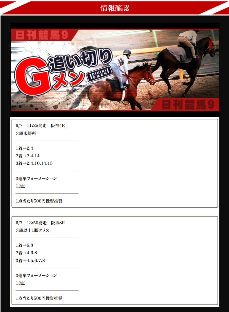 約束された万馬券の買い目が届く!