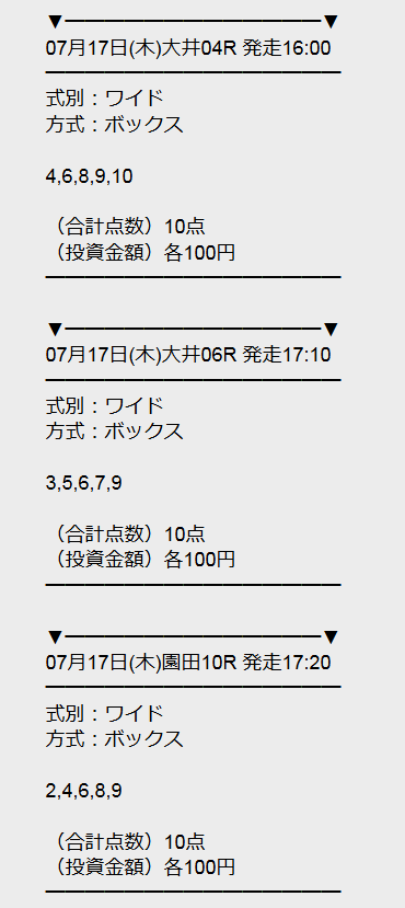 この情報で3戦2勝です! よく難しいワイド取れましたよね!