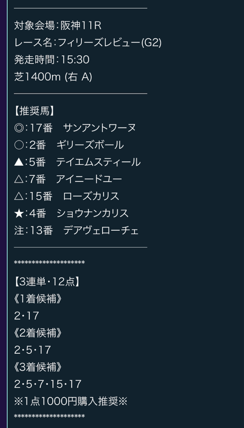 フィリーズレビューまじで嬉しい的中でした!
