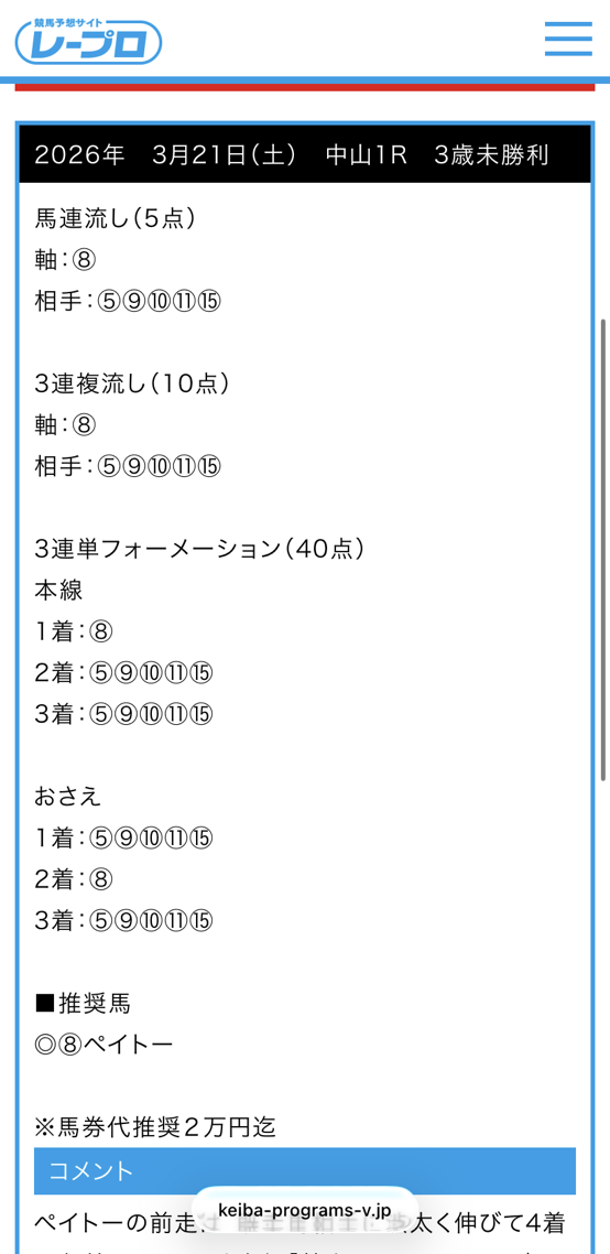 無料予想三連単当たりました!