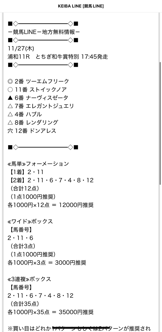 8/20(水)浦和11レースの無料情報で万馬券とれました!
